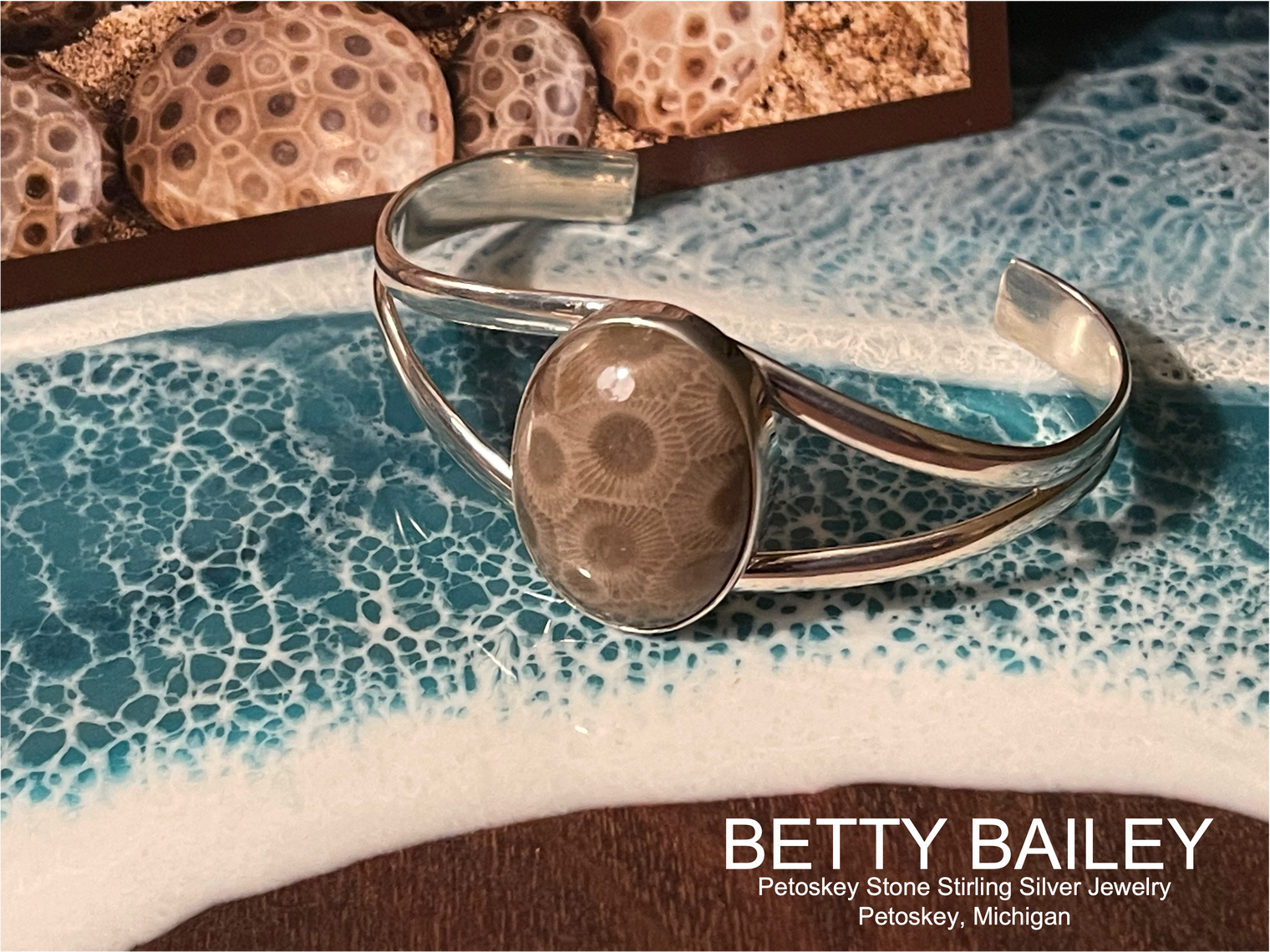 Regular price$300.00Regular priceSale price$300.00 Save $-300.00 (%)Unit priceperBetty Bailey Petoskey Stone Sterling Silver Cuff Bracelet - Large Medium Oval